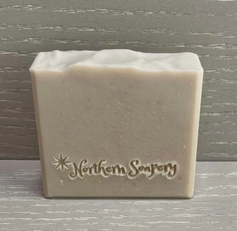 Ingredients: Saponified oils of olive, coconut, palm, shea butter, cocoa butter, castor, distilled water, goat milk, colloidal oats, manuka honey, sodium lactate, kaolin clay, fragrance oil, titanium dioxide.