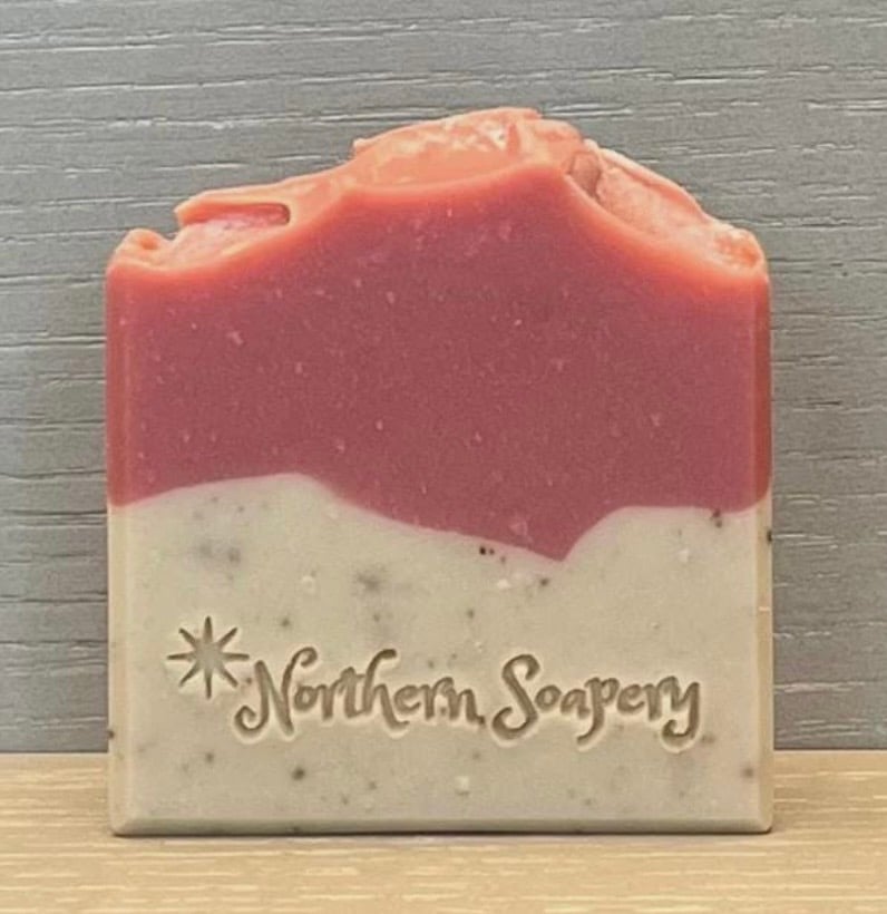 Ingredients: saponified oils of olive, coconut, palm, sunflower, castor, cocoa butter, distilled water, heavy whipping cream, sodium lactate, colloidal oats, manuka honey, kaolin clay, fragrance, vanilla bean powder, mica, titanium dioxide.